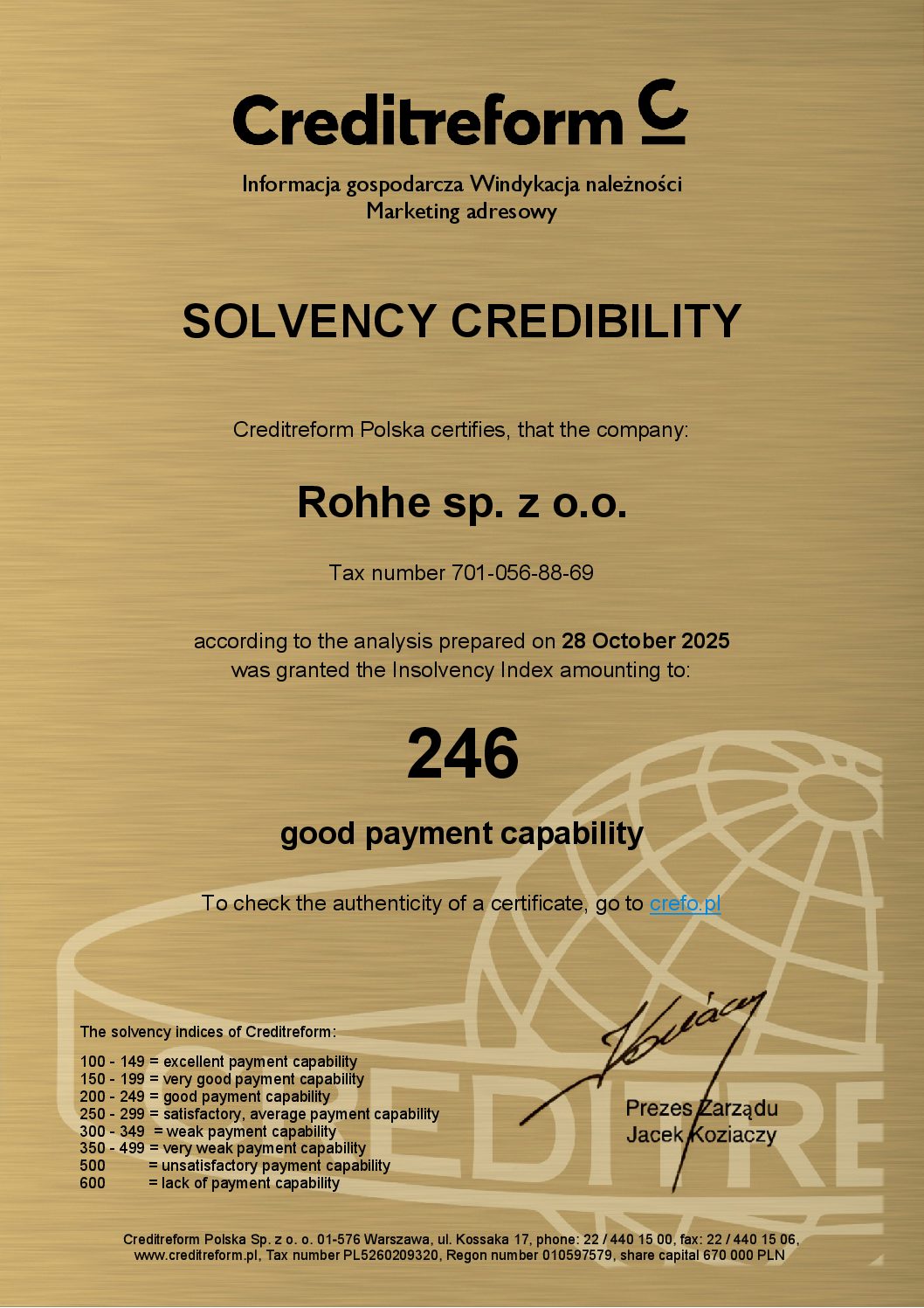 ROHHE has undergone a payment credibility assessment and received a certificate confirming its reliability